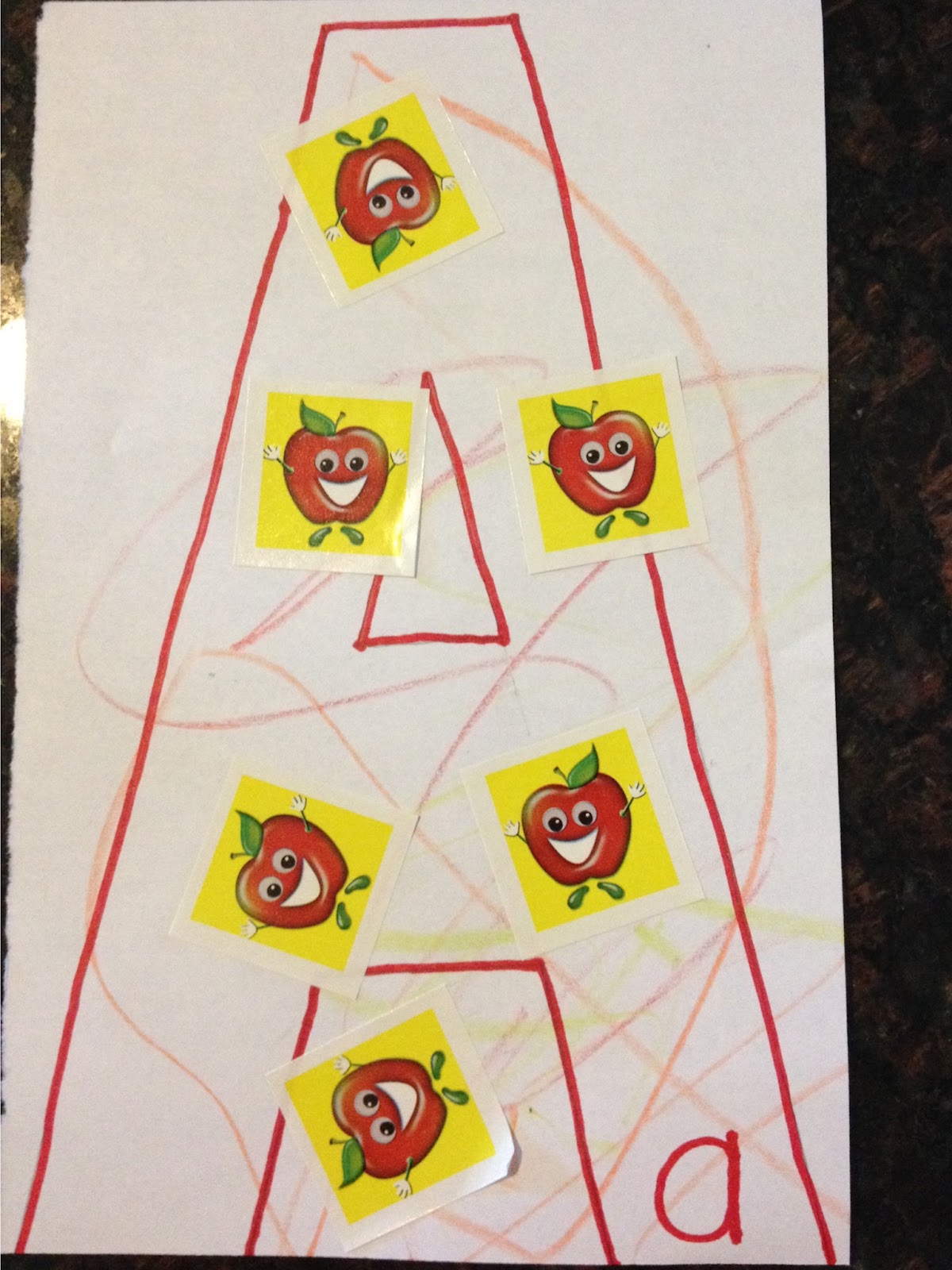 | Haddy with her apple pie spiced playdoh apple (complete with pretzel stem and mint-leaf) before our pretend and real applesauce making! |